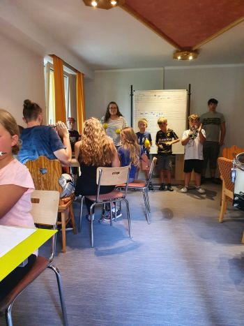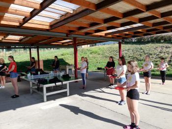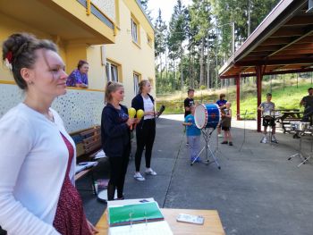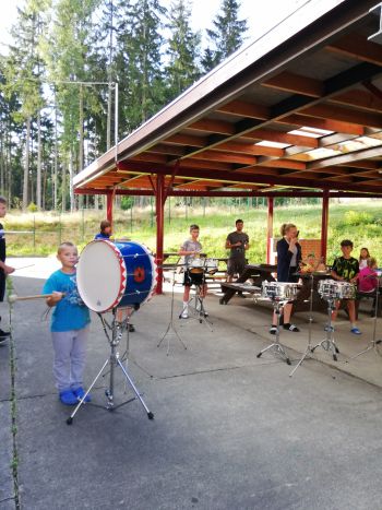 Neben den ganzen Übungsstunden durfte Freizeit auch nicht fehlen, deshalb besuchten wir regelmäßig bei schönem Wetter das nahe gelegene Schwimmbad. Die zwei regnerischen Tage nutzen wir für etwas intensivere Übungsstunden, welche trotzdem nicht langweilig wurden, da für genügend Abwechslung durch Marschtraining, Notentheorie, ein Besuch bei unserer Bastelmutti Kristina und das spielen verschiedener Titel gesorgt wurde.